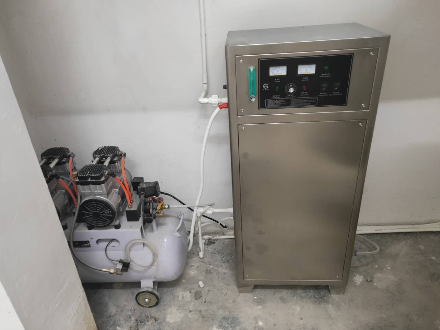 配置:雙機頭空壓機3000瓦,1個水泵  1個φ900*2100反應罐,600W尾氣處理器1個,1個臭氧檢測儀AyR臭氧發生器_臭氧消毒機_臭氧水機_制氧機_廣州佳環電器【官網】